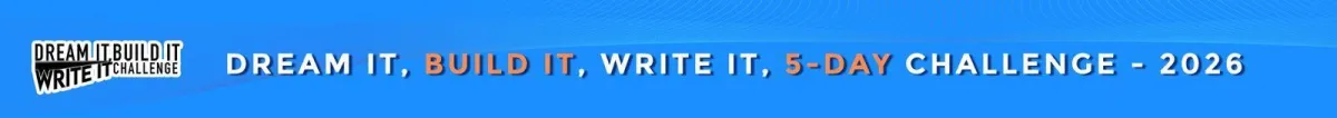 The Dream It, Build It, Write It Challenge runs February 2026 at 12 PM Mountain Time.